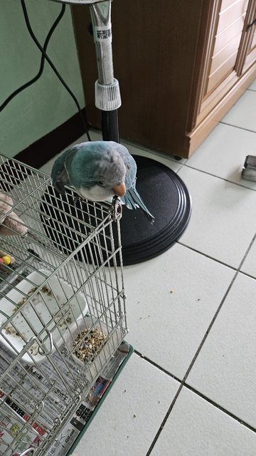 邊翅膀疑似受傷 但有飛行進食 目前休息中 家中有養一隻小太陽 沒有多餘鳥籠給他使用