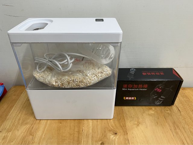 物品名稱:小魚缸、底沙、加溫棒