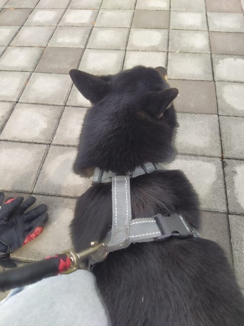 我追著牠過馬路 幸好牠有自己靠過來讓我抓到繩子,現場找不到主人