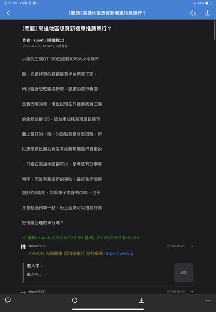 → toymilaran : 也都可以保養,找間技術好的定期保養就可以穩穩騎了 11/05 23:51