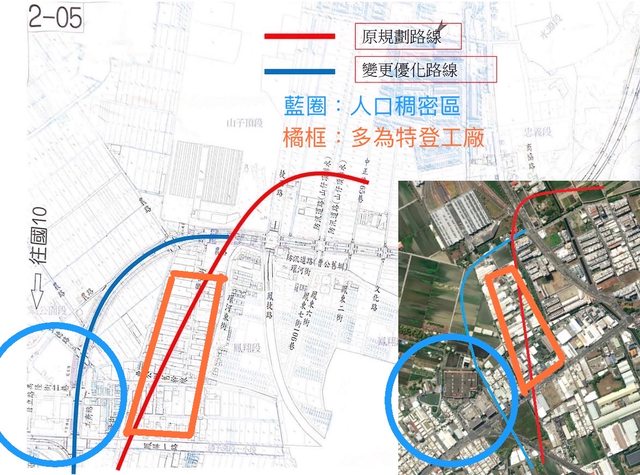 推 egojustin : 看了圖,優化路線避開徵收工業地,拆工廠(員工失 11/12 21:51