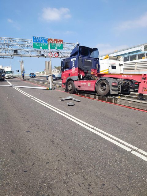 有聯結車撞倒路燈