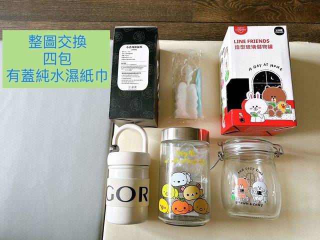 1.保溫瓶&玻璃儲存罐*2,換四包有蓋純水濕紙巾