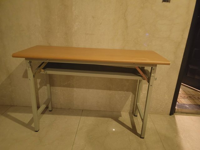 桌子本身有點重量喔!桌椅無法摺疊(應該是,我不知道如何收合)