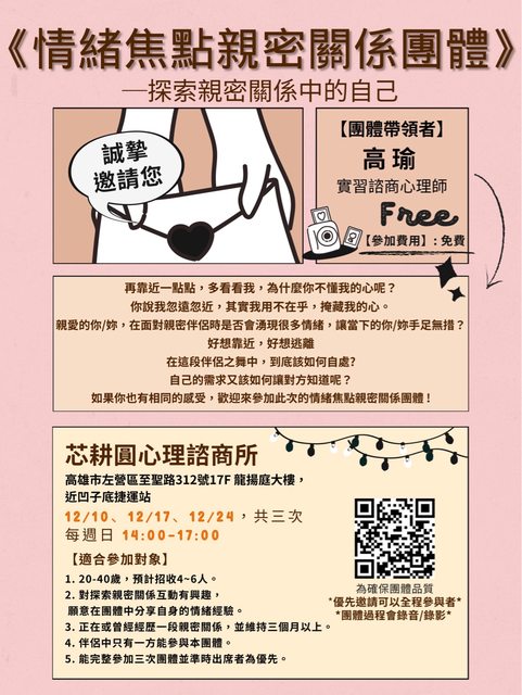 標題《情報》情緒焦點親密關係團體招募中~