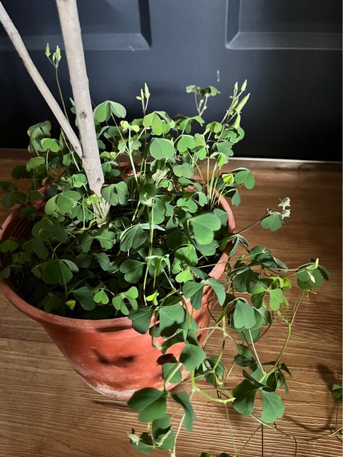 盆上有黃色的直酢漿草