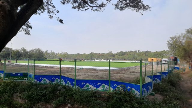 目前看不出來有無夜間照明設備。人工草皮已經鋪設完畢。再請版友接力更新球場完工進