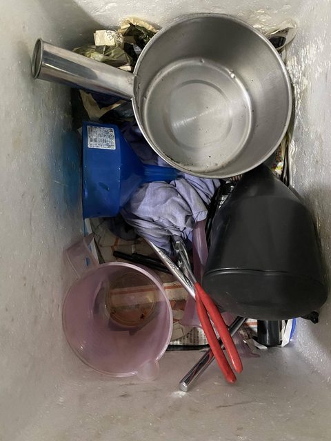 裡面鋪了報紙與粗清用的破布