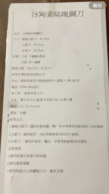 物品名稱:白陶瓷玫瑰鋼刀