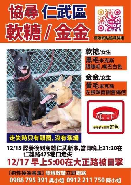 標題協尋高雄仁武-金金、軟糖(來自板收)