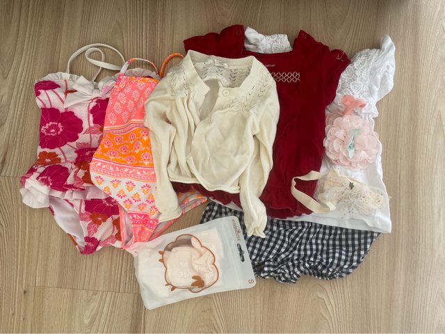 衣物大概約70公分左右。 有泳衣兩件,其他衣物及配件數件。如圖。 https://i.imgur.com/JzgWvAZ.jpg
