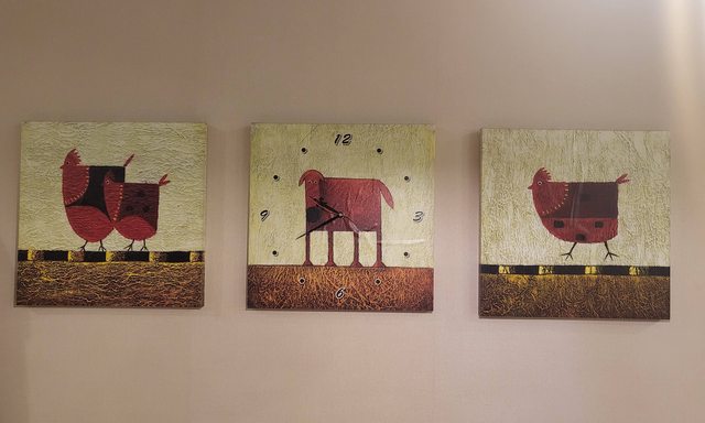 物品狀況:尺寸皆為40×40,中間的時鐘應無法正常運作,可當作一般無框畫裝飾