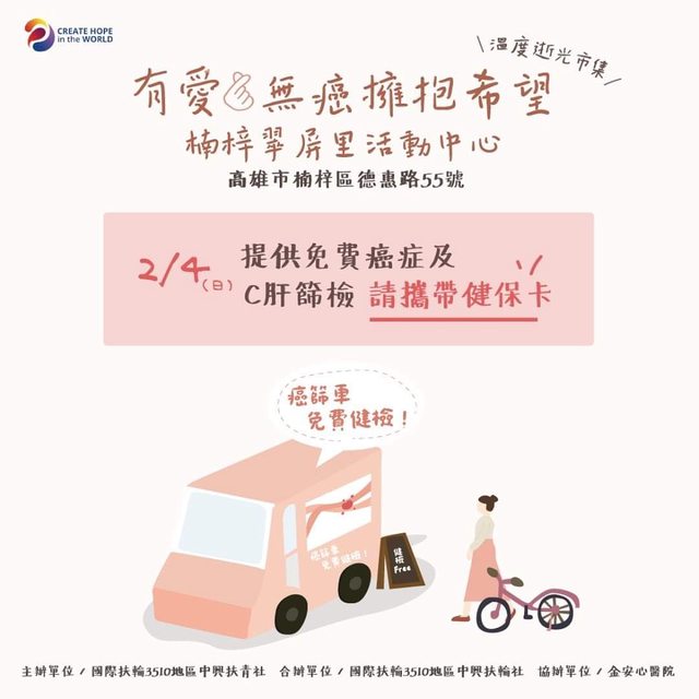 標題[玩樂] 2/4癌篩車免費健檢暨公益市集活動