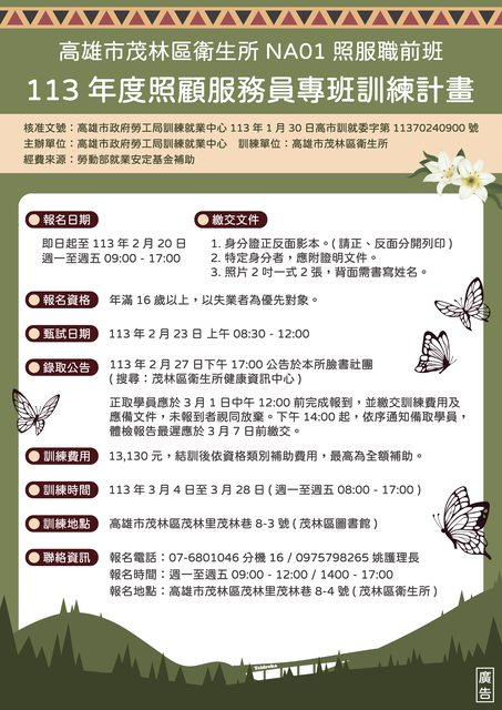 標題[活動] 茂林區「照顧服務員」訓練