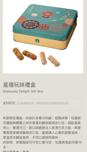 物品名稱:星巴克年節禮盒 市價580元