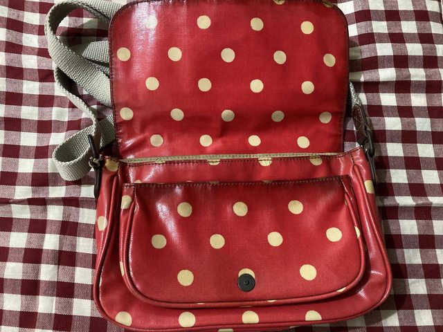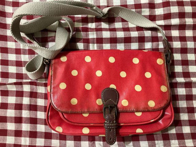 很有使用痕跡,但拉鍊跟背帶固定處有皮件的地方都是真皮的