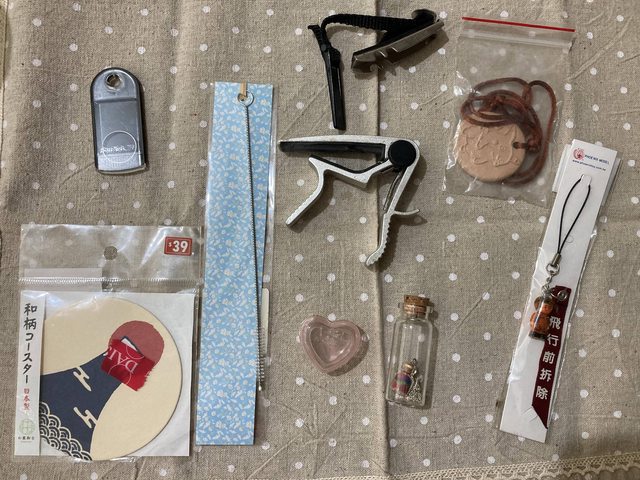 吉他移調夾、吸管刷、吊飾、還有記憶卡送的鑰匙圈