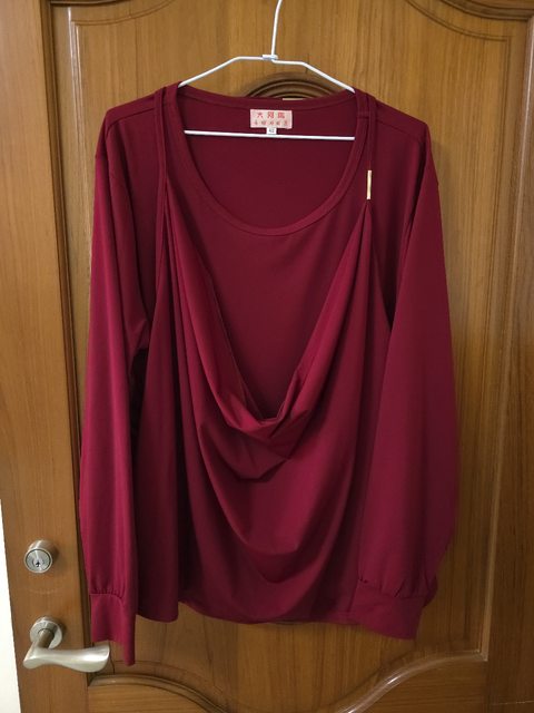 2. 棗紅色假兩件式長T
