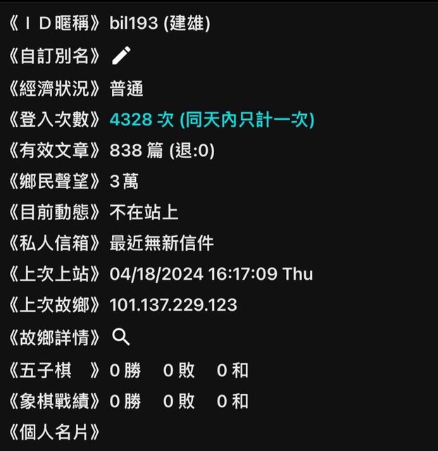 《ID暱稱》bil193 (建雄) 《經濟狀況》普通