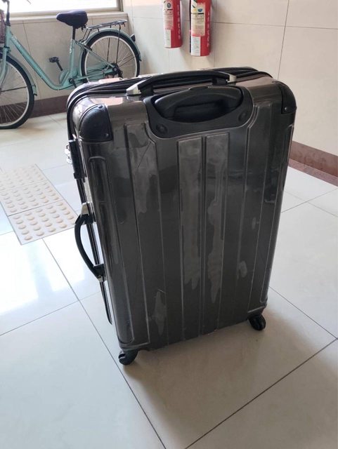 物品名稱:二手行李箱(表面部分脱膜,2個輪胎皮脫落,可滾動)