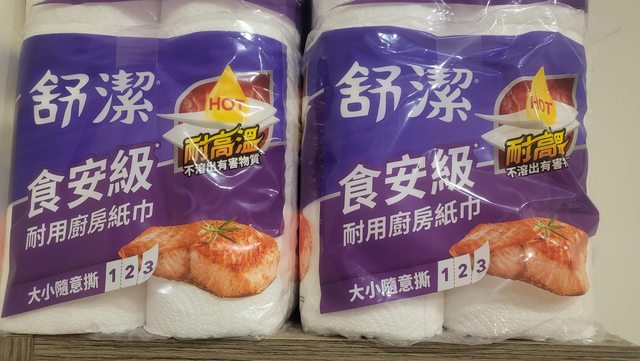 物品名稱:舒潔食安級廚房紙巾108×6捲/一袋,有兩袋