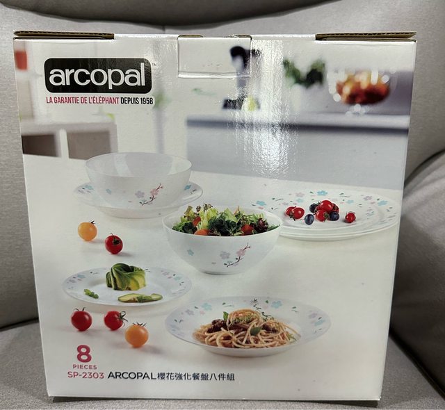 物品名稱:arcopal櫻花強化餐盤八件組