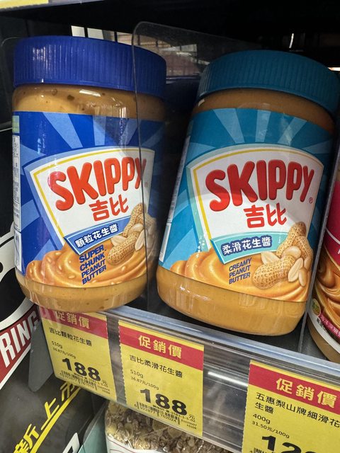 大瓶的吉比花生醬顆粒跟柔順各一瓶