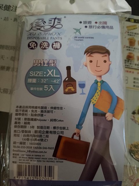 物品名稱:男用免洗內褲XL