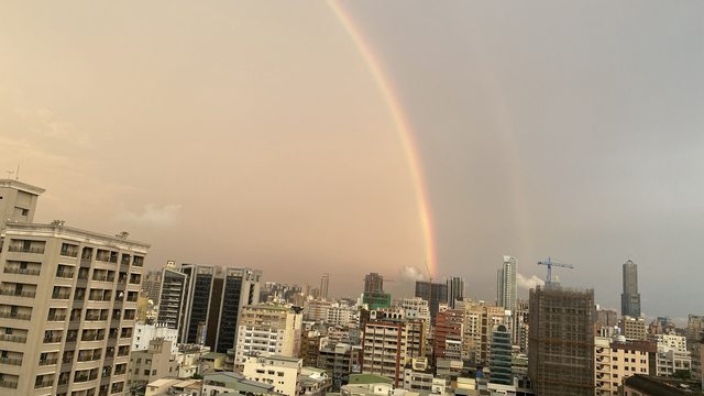 現在三民區可以看到兩個彩虹((圖片拍不太出來