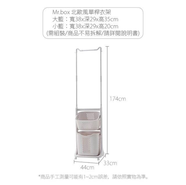 B -單桿洗衣分籃(上小格+下大格)