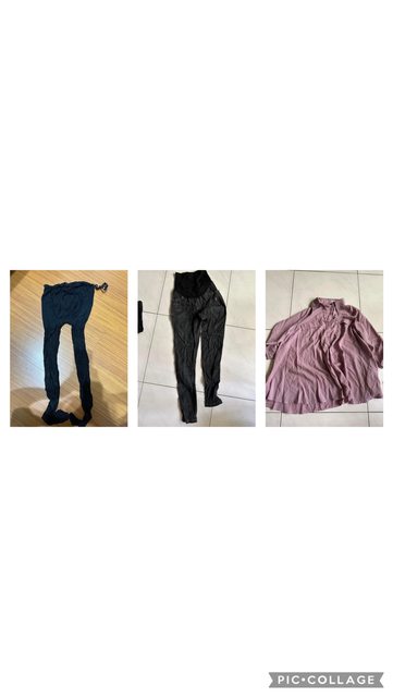 2.孕婦褲一件+一件孕婦褲襪(只穿一次)+一件F襯衫(下擺寬大可遮肚),尺寸M