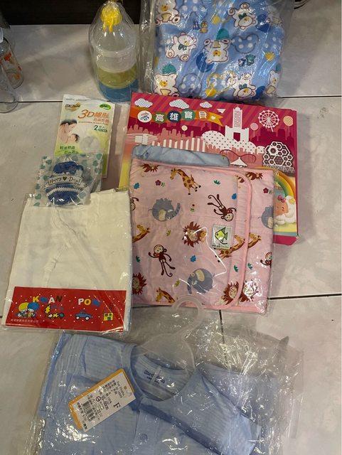 物品名稱:嬰兒奶瓶、奶粉分裝罐、紗布衣、毯子、