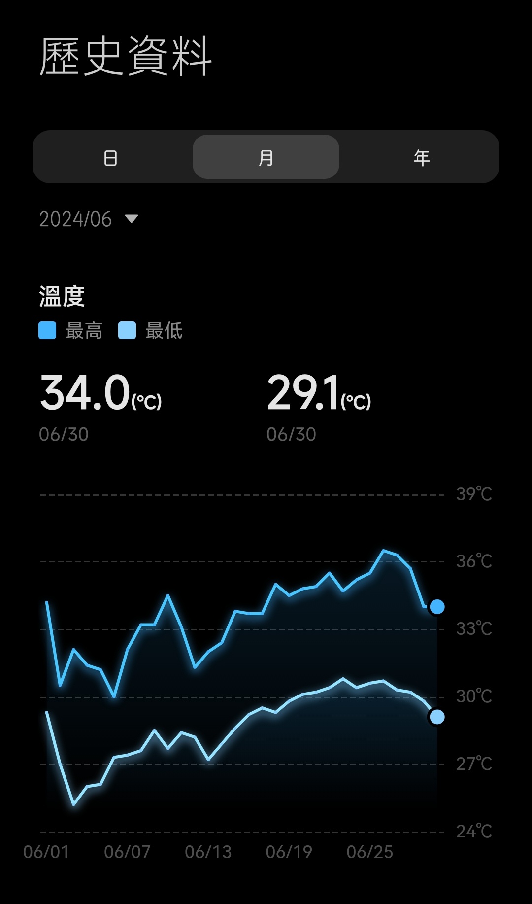 → bailan : 這邊紀錄的六月每天高低溫,大概六月中左右開始往上07/03 15:21