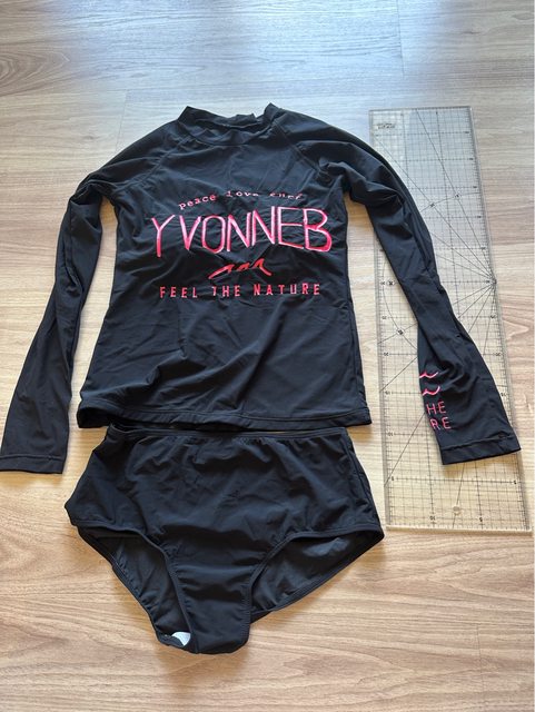 7. 全新未試穿長袖泳衣+三角泳褲(黑底桃紅印花,尺寸應該是S)