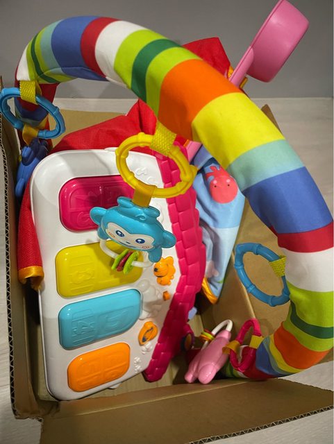 骨架其中一邊不太穩,地墊很新,上面的猴子可以取下