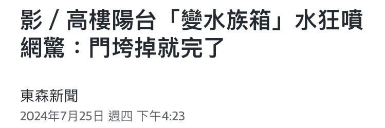 推 danielrobert: 高樓陽台我看新聞那高度應該是二、三樓而已,低樓 07/27 19:35