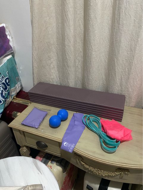 物品名稱:瑜珈墊和彈力繩多條和放鬆花生球