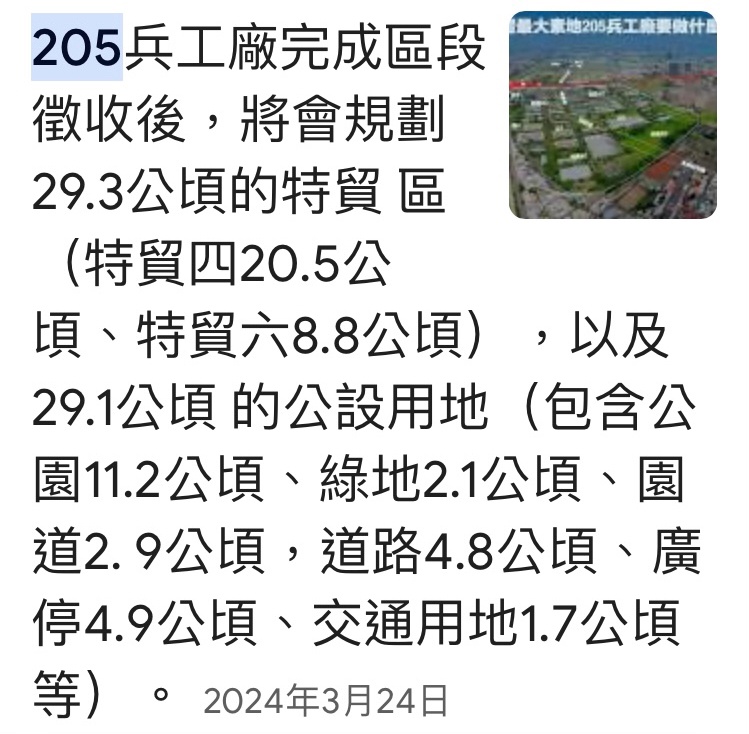 → btwsniper : 205兵工廠那塊地絕對夠大,但問題不是蓋,而是蓋好 09/28 03:15