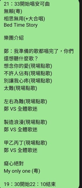 → et69523820 : 19:30準時開唱 唱到22:10結束 09/30 00:37