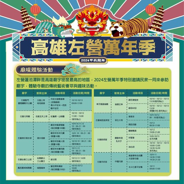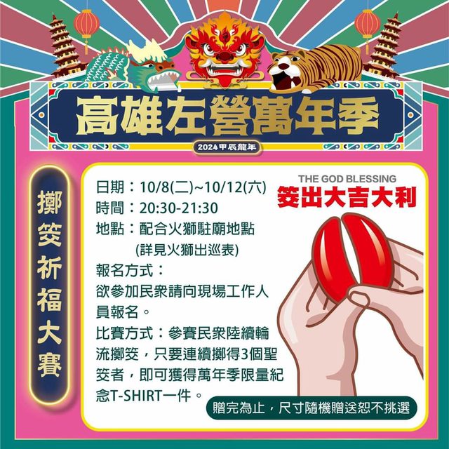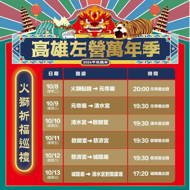 標題[閒聊]10/8~10/13 「2024左營萬年季 熱鬧登場」