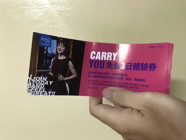 因為買教練課有送免費的三日體驗券