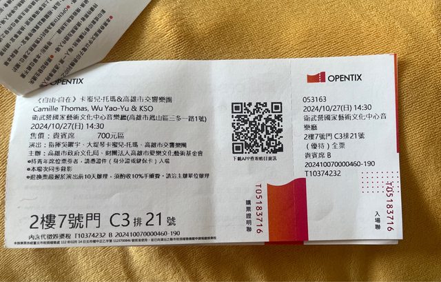 物品名稱:《自由椰萓b》卡蜜兒椰姿?&高雄市交響樂團 門票兩張