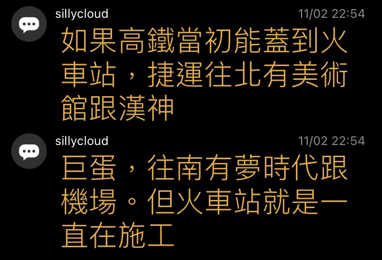 → sillycloud : 高鐵沒到火車站影響比較大 11/02 22:46