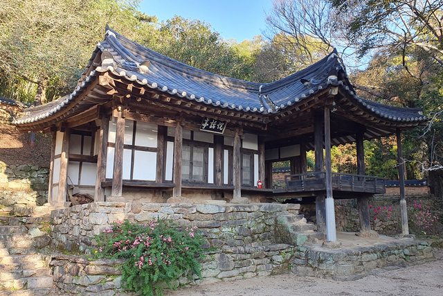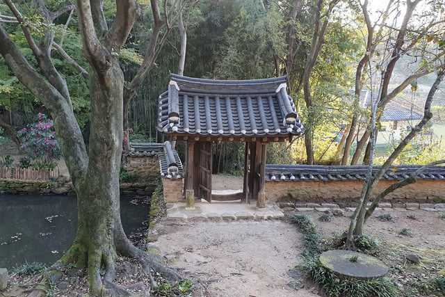 悅話亭是江洞村中地勢最高的古宅,為朝鮮憲宗時期學者李鎮晚為培養後輩所建立。宅前
