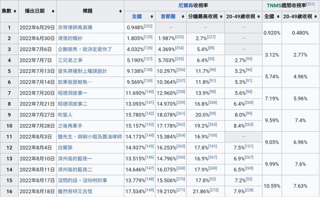→ tieneun: 從第一集播到目前播出的,重播收視率也很高 07/17 16:53