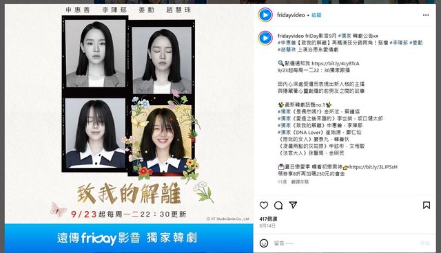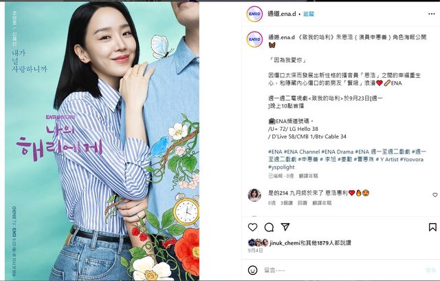 浪漫主義女王申惠善和愛情眼神李陣郁。請留下對透過電視劇《#致我的解離# 》回歸的