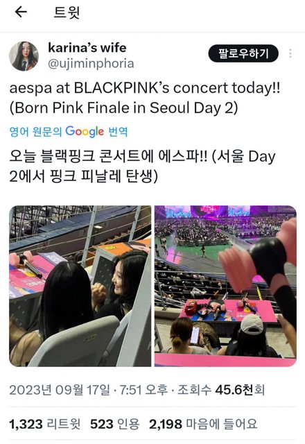 https://bit.ly/3sZRdp6 aespa也是滿意外的嘉賓,而且還滿粉的感覺, 連ROSÉ在台上指揮觀眾把粉錘左搖右擺加旋轉都跟著做XD https://bit.ly/44XrgUq -- ※ 發信站: 批踢踢實業坊(www.ptt-website.tw), 來自: 223.136.54.176 (臺灣) ※ 文章網址: https://www.ptt-website.tw/KoreaStar/M.1695009658.A.26A