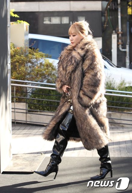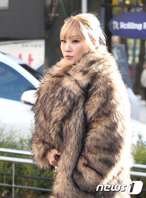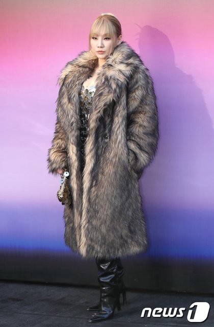 CL身穿奢華的毛大衣和能凸顯出迷人豐滿身材的亮片連身裙亮相,自信的姿勢和眼神散發