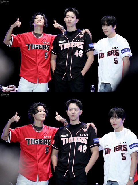 在簽售上身穿起亞虎隊服的CNBLUE