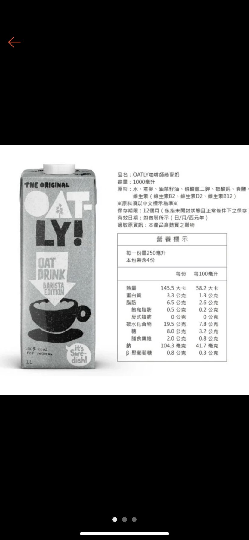 推 SRT0619: 燕麥奶 蛋白質:脂肪:碳水=1:2:6 不太ok 125.229.20.110 10/28 09:16